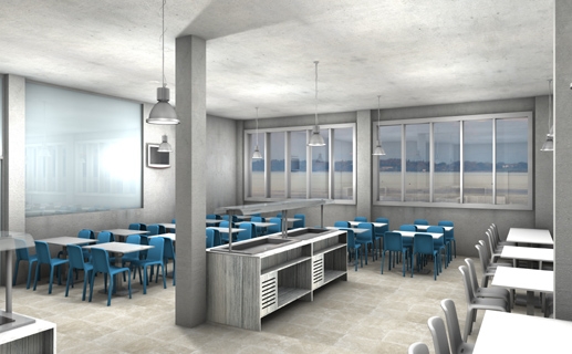 Progettazione e fornitura di cucina professionale, area self-service e arredamento nel nuovo Centro Velico "SAILING VILLAGE" a Campione del Garda, sulle sponde del Lago di Garda.